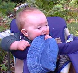 We had lots of fun. One day we went for a hike in the woods. I rode in the backpack. :-)